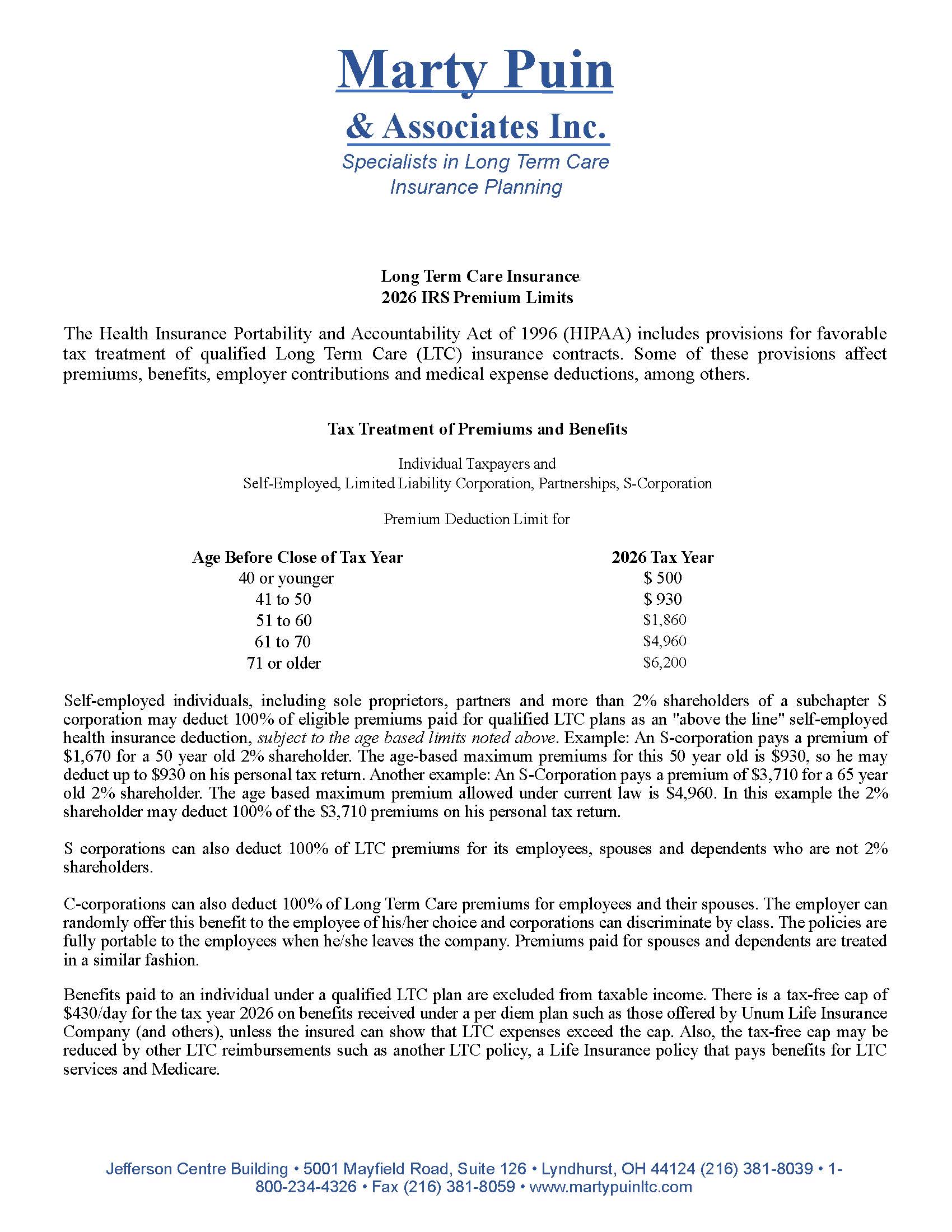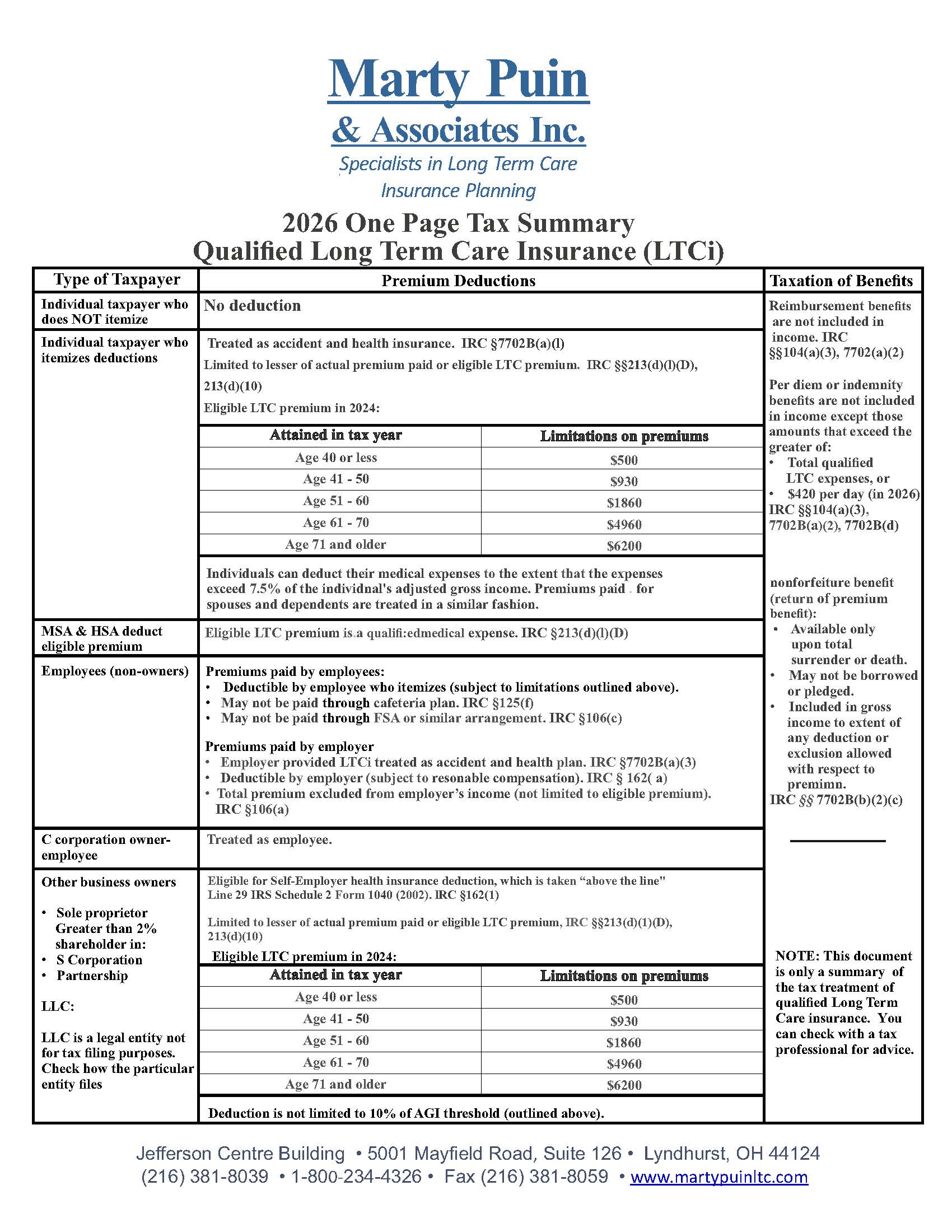 •Employer-paid LTC premiums for employee, spouse, and retiree coverage may be deducted as a business expense